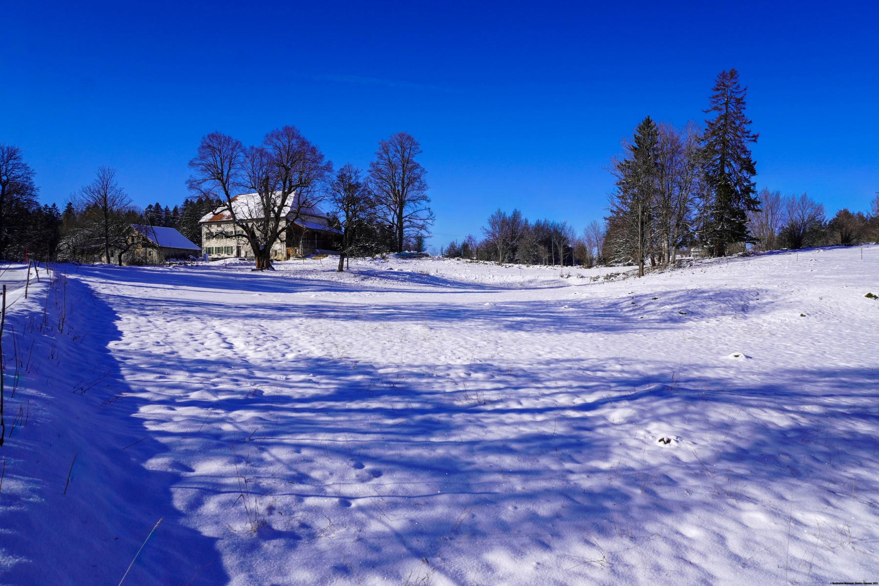 Voici une petite randonnée que nous avions déjà entreprise il y a quelque temps. La dernière fois, c’était sous la neige. Dans ce cas, il y avait bien un peu de neige au sol, mais le temps était au plus beau.