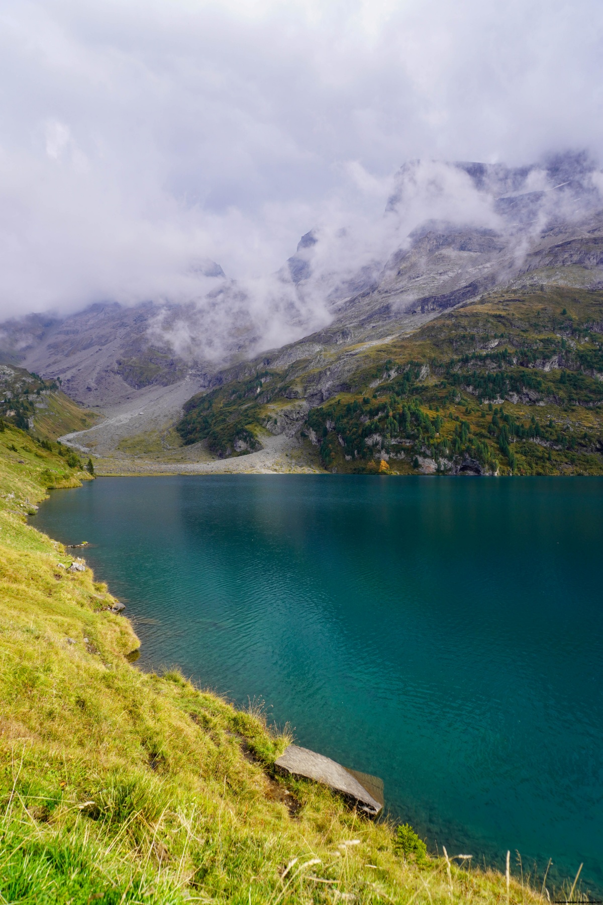 Arrivés au Jochpass, nous sommes descendus directement en direction du magnifique Engstlensee. Certes, le sentier direct est nettement moins pittoresque que celui traverse par les hauts et descend le Schaftal. Toutefois, comme nous avions déjà effectués quelques kilomètres, il avait été plus sage de descendre au plus direct et rejoindre l’hôtel Engstlenalp.