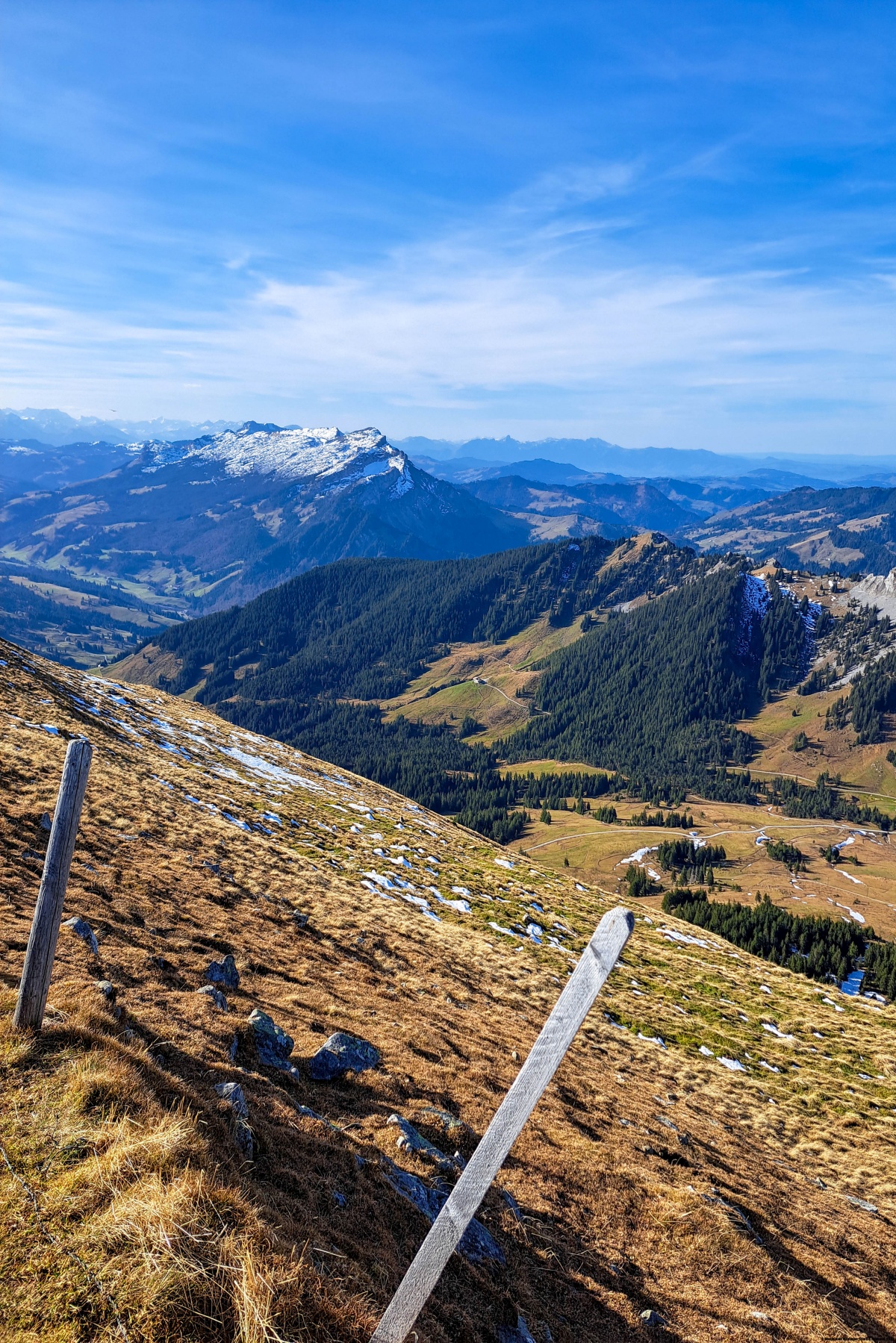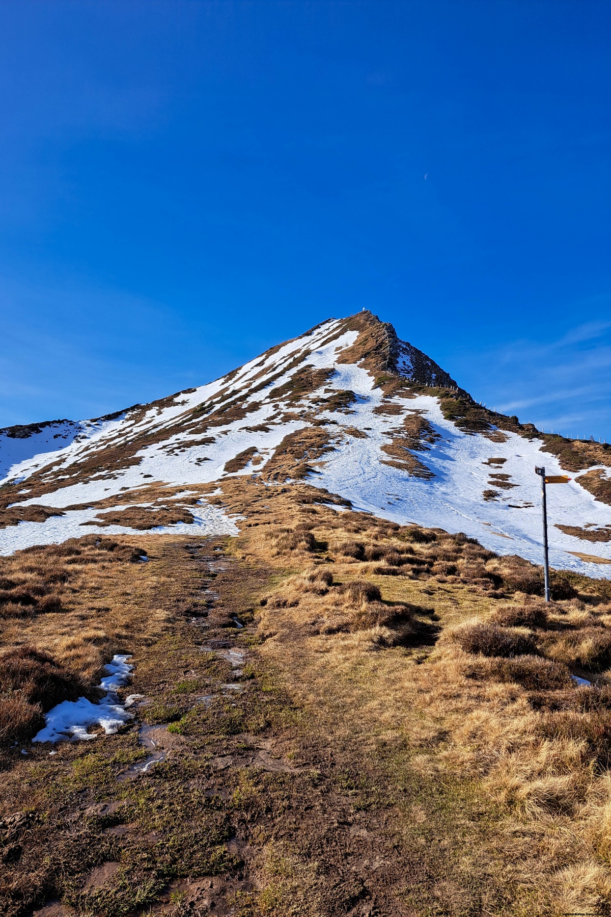 Depuis le Rickhubel, on traverse alors en légère descente pour atteindre un petit col juste en-dessous du Fürstei. C’est à partir de cet endroit que les choses sérieuses commencent, car cela devient de plus en plus raide.